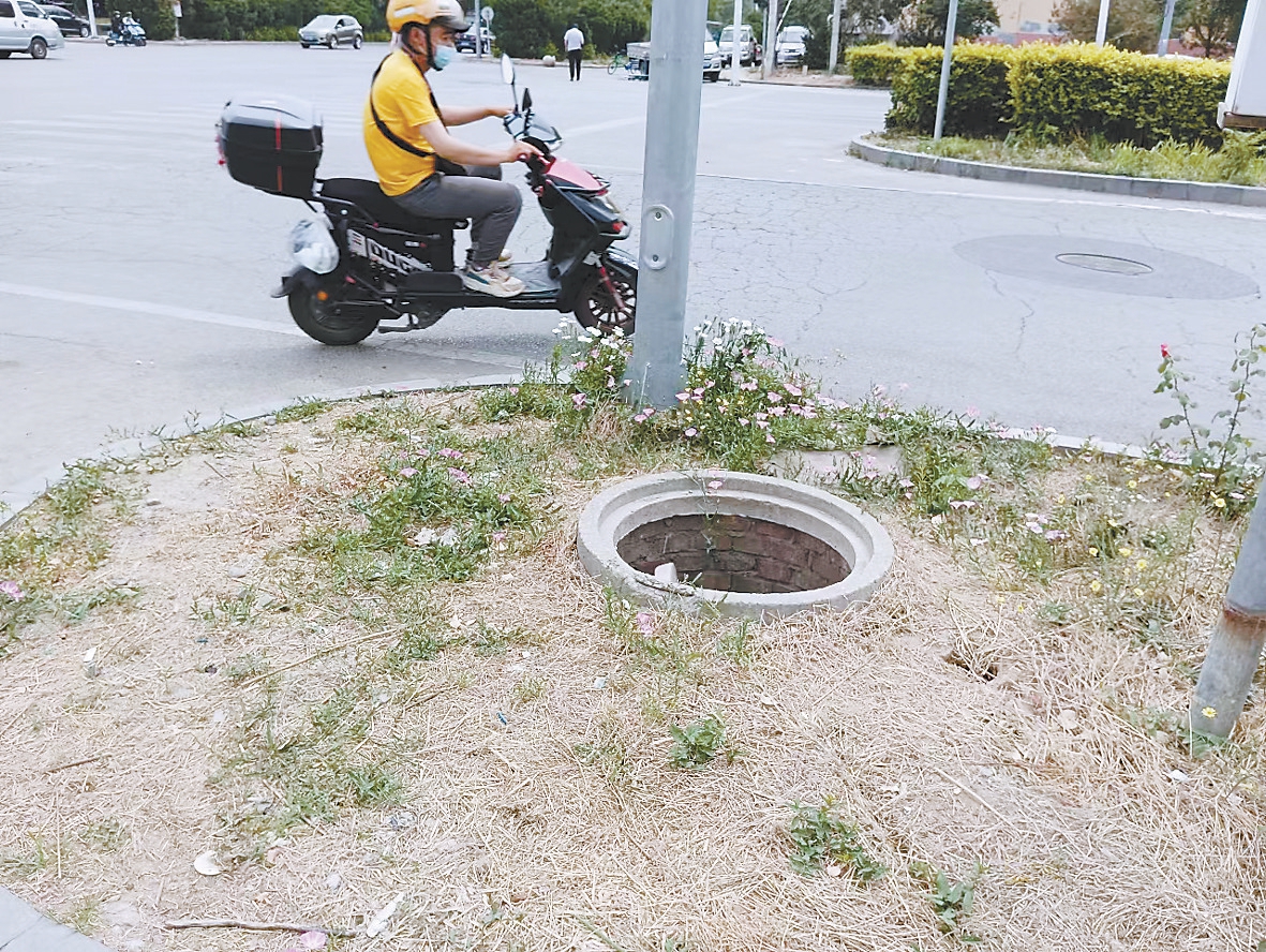 更为严重的是,经海路两侧偏持绿化带内,井座、井盖问题较为大王人。多口竖立井井盖或丢失不见,或幻灭不胜,或井座塌陷。缺失井盖的井口掀开着,为防行东谈主误入,井口上还挑升搭上了两根混凝土石条。井内塞满了多样垃圾。一口竖立井的井座已被车辆碾碎,井口泄露。